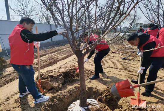 活動現(xiàn)場黨旗飄揚,黨員干部熱情高漲,揮鍬鏟土、扶樹填土,每個環(huán)節(jié)都銜接有序、一絲不茍,呈現(xiàn)出一片熱火朝天的忙碌景象,展現(xiàn)了黨員干部積極向上的精神風(fēng)貌。在大家的共同努力下,一株株新栽樹苗昂然挺立,錯落有致,煥發(fā)勃勃生機(jī),為園區(qū)增添一片綠色。