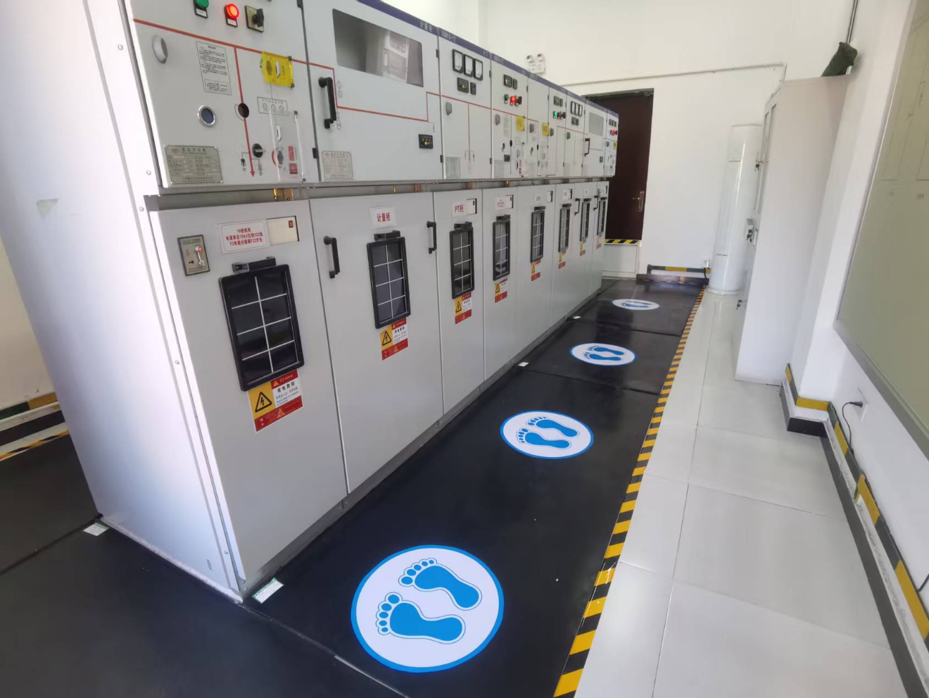 閘站作為防汛工作的重要設施,其配電房更是保障電力供應的關鍵樞紐,安全管理責任重大。建發(fā)公司嚴格遵循GB 2893-2008《安全色》國家標準,科學規(guī)劃、精準施策,在5所閘站配電房的操作區(qū)域規(guī)范設置地面警示標貼180米,安裝安全警示標貼28個。這些標識采用國際通用的安全色標,布局合理、醒目清晰,有效劃定了安全操作區(qū)域,為運維人員提供了明確的操作指引,顯著降低了誤操作風險,切實防范了觸電等安全事故的發(fā)生。