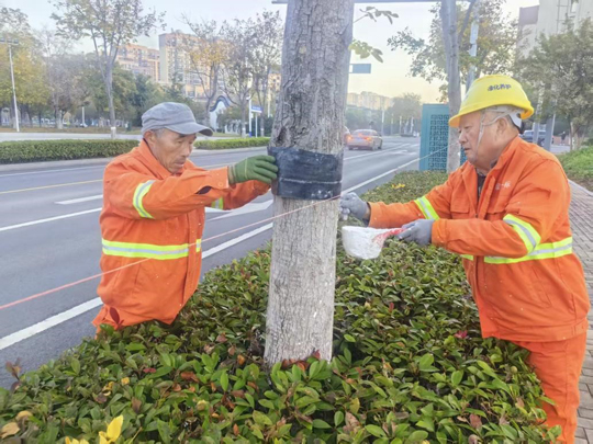 隨著氣溫逐步降低,建發(fā)公司全面啟動樹木涂白工作,為道路、公園、廣場及景觀帶的喬灌木穿上抗凍防寒、抵御病蟲害的“防護(hù)衣”,以保障其安全越冬,提高保存率,進(jìn)一步擦亮城市生態(tài)底色。