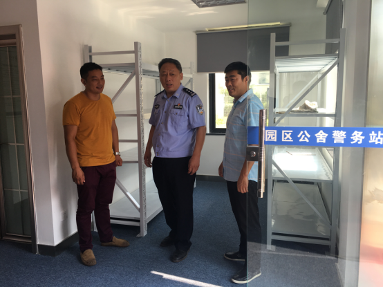 7月28日下午,園區(qū)公安分局副局長劉勇一行人來園區(qū)公舍視察公舍警務(wù)室籌建工作進展情況,物業(yè)管理部負責(zé)人范以加陪同視察。